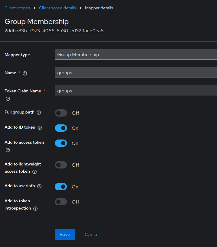 - make sure Add to ID token, Add to access token, Add to userinfo are set.
