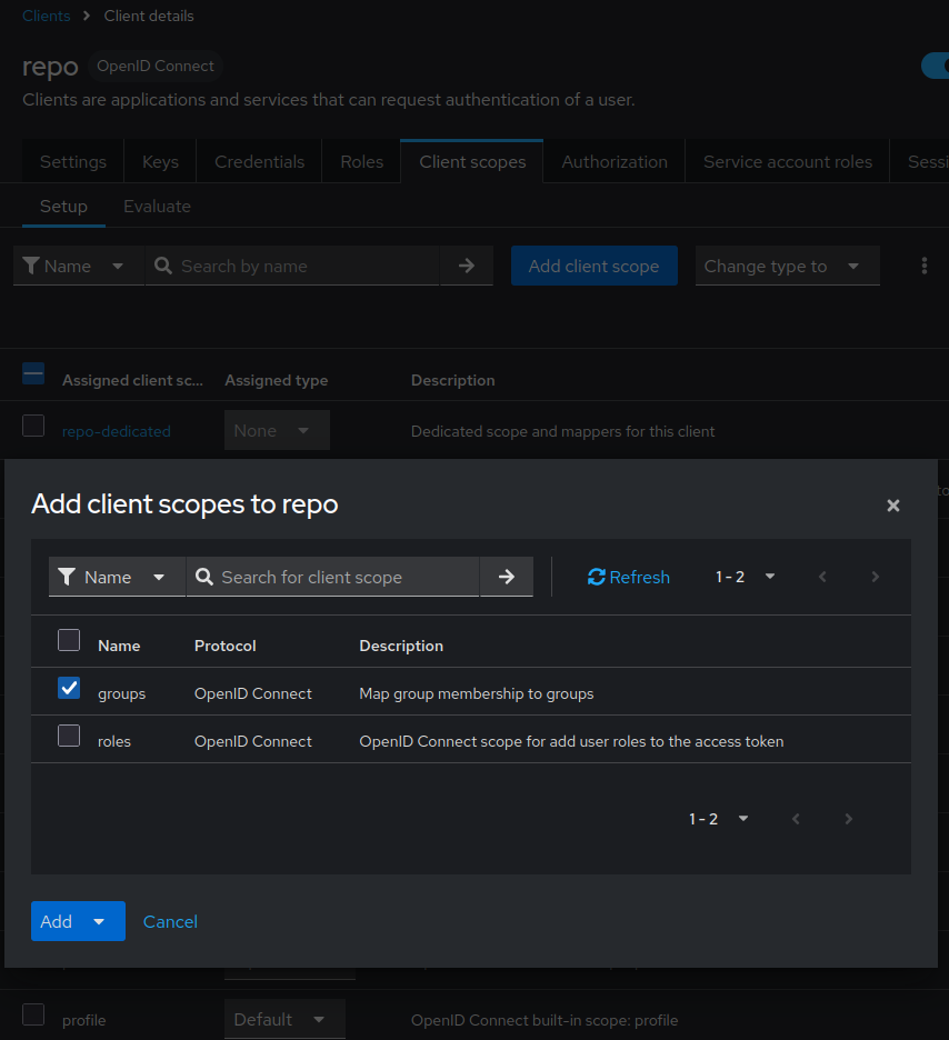 repo - navigate Client Scopes -> repo-dedicated